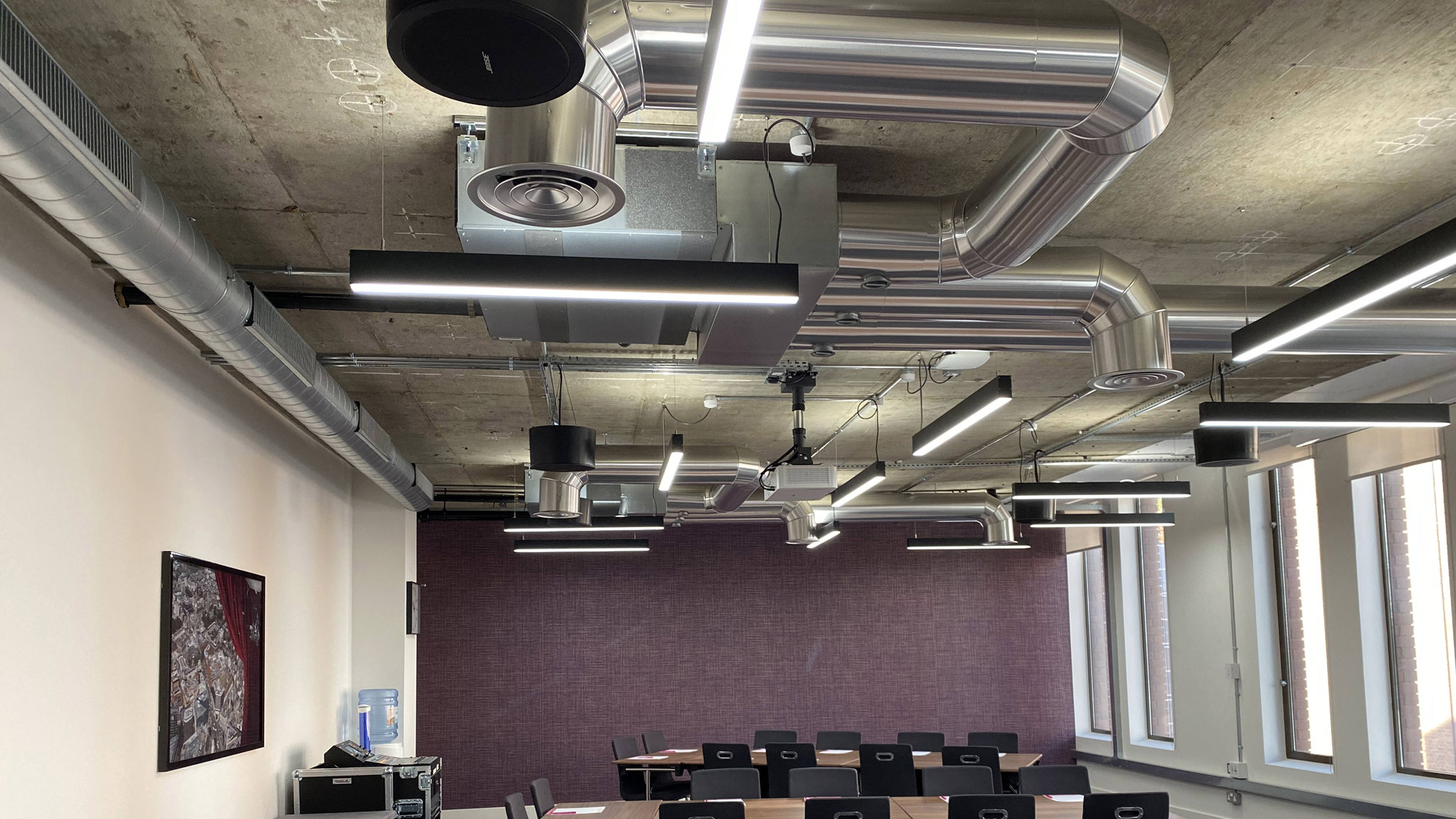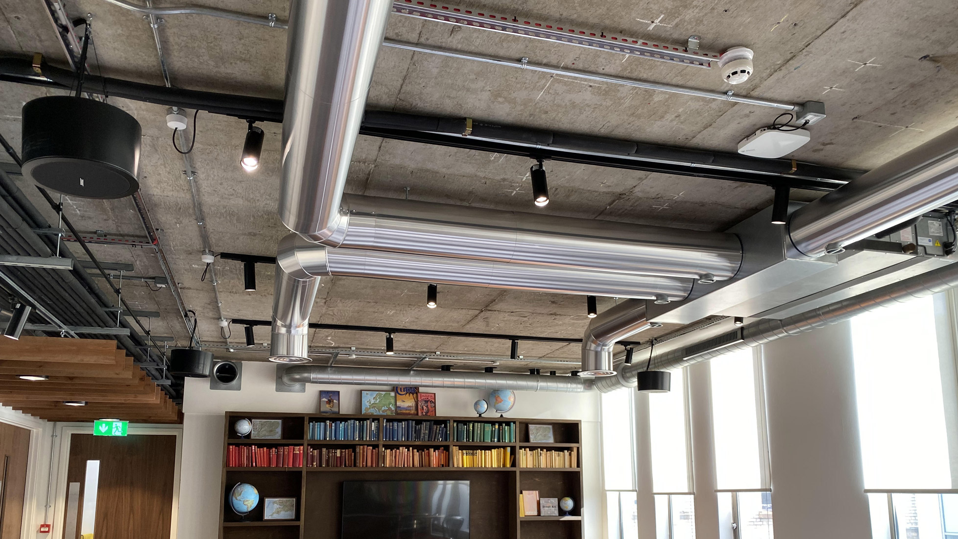 EVS were appointed to deliver the exposed ductwork installation for an all-new 28,000 square foot training centre in London within the Holborn District. Intended to provide a modern twist on the traditional training facility, this project was heavily centred around a sophisticated interior design scheme. In the designer’s own words, “Gone are the days of stuffy, expensive syndicate rooms.” Their aim was to create a collaborate multipurpose training space, where businesses could confidently host professional training sessions in a modern and inviting space. While the ductwork installation was instrumental in facilitating the overall image of the training centre, it had to be highly effective too. Internal air quality is proven to enhance productivity and concentration, therefore an efficient ventilation system was somewhat of a necessity for the nature of this modern training centre.